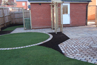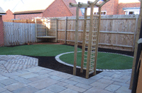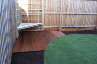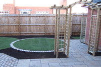 Gallery Page One. A contemporary Garden design featuring bold lines, timber structures and mixed paving styles. Please click on any of the images to enlarge