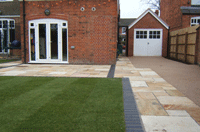 Gallery Page Two. A traditional garden design featuring a large lawned area with a sympathetic paving design to accompany the original building & brickwork. Please click on any of the images to enlarge